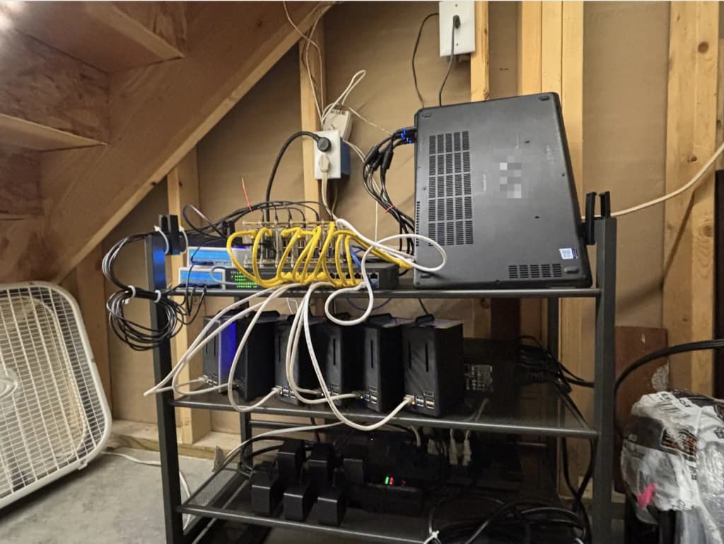 There, on the floor, she found something curious. It was a pile of laptops, raspberry pis, and Libre single board computers. She didn't know it, but she had stumbled across the family's handy-dandy Kubernetes installation. At the time of this discovery her often-declared favorite color was blue. What a coincidence this was, as blue also happened to be the color of the Dell laptop power plugs, glowing there in the otherwise dark guest bedroom.